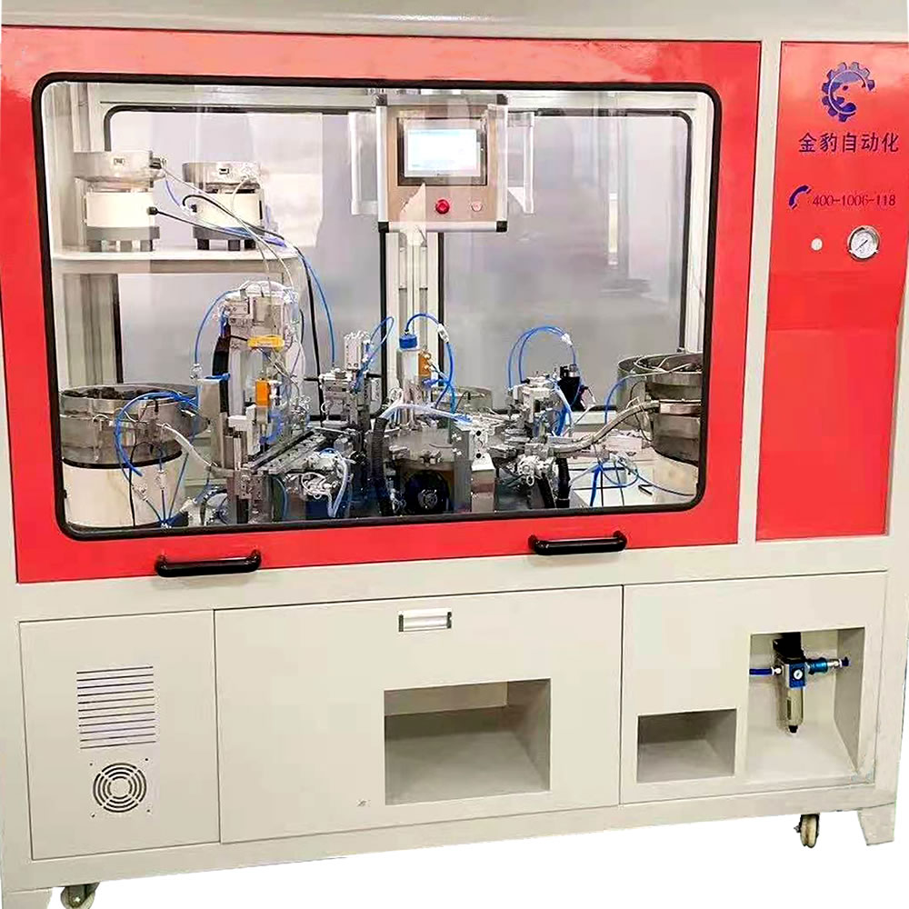 浙江金豹自動化有限公司坐落于享有“電器之都”之稱的樂清市,專業從事自動化生產設備的研發、生產、銷售??砂从脩粢蠖ㄖ品菢俗詣踊O備,為各類開關元件、插座元件廠家提供自動化生產解決方案和技術支持。 公司擁有先進的生產設備,經驗豐富的工程設計研發團隊,專業的生產隊伍,嚴格的產品檢驗制度,確保產品的穩定性,可靠性和長壽命。經過多年的研發并吸取國際機械技術之精華,采用先進的生產工藝,并達到國際同行先進水平。 本公司產品廣泛應用于機械、電子、汽車電氣、接插件、標準件、軸承、醫療品械、五金等行業。特別本公司設計制造的 輕觸開關裝配機、DC插座自動組裝機、按鈕開關裝配機、自動銀點鉚接機及船型開關自動組裝機,贏得了廣大客戶的高度評價。  …